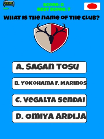 This japan soccer quiz includes the logo of soccer team in Niigata & Seiro, Kashima, Omiya, Osaka, Yokohama, Kawasaki, Nagoya, Urawa, Kashiwa, Shizuoka, Hiroshima, Tokyo, Tokushima, Sendai, Kofu and Kobe