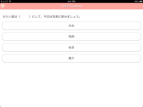 Pretty good collection of questions. Most similar apps are much too basic or have very different choices so the answer is easy even if you dont really know it. I like that this one has similar format questions to the exam (although not all types) and that its all in Japanese. Compatible with ios 8.