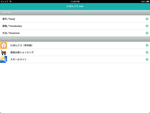 The Lite version consists of 40 Kanji questions, 30 vocabulary questions and 30