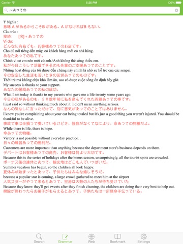 - Grammar dictionary, more than thousand grammar structures from N5 to N1 level.