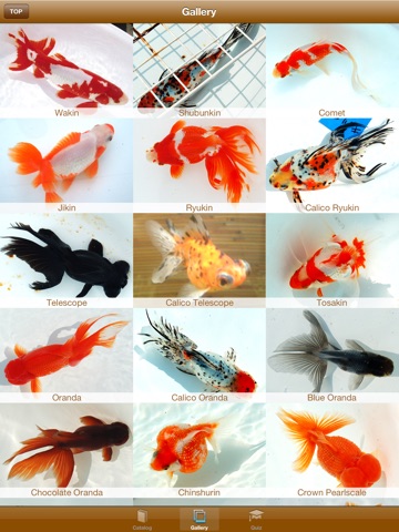 In this app,background explanations and acquisition difficulties of various goldfishare available with beautiful pictures of award-winning goldfish.