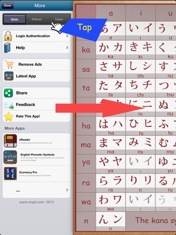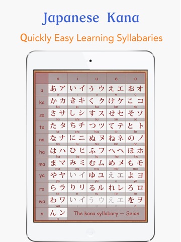 "Japanese Kana" is a life-wide learning Japanese kana syllabaries software.It allows you to quickly keep in mind the voiceless, voiced / half voiced, bend sound of hiragana & katakana pronunciation and stroke order.