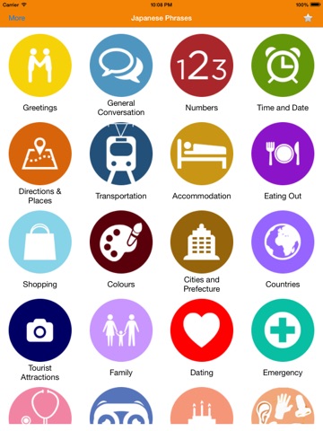 "Japanese Phrase Study" contains over 850 phrases in 20 categories, and two test mode to you study. And favorite mode help you save phrases which you like.