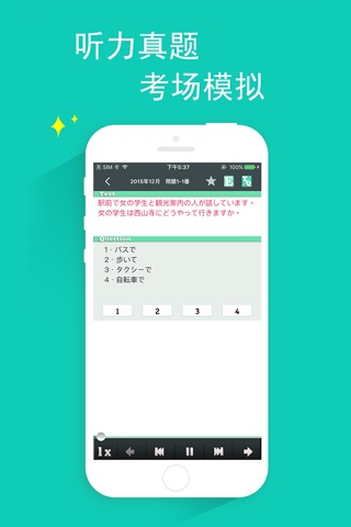 Many kinds of display pattern provide you with mock exam mode and practice mode. Whats more, you can enjoy brilliant functions such as screen word-capturing, vocabulary notebook, speed adjustment, background play, sentence-by-sentence play and so on.