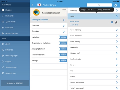 This is a great app if you are traveling to Japan and need to learn the basics. Only wish u could access offline version as there isnt always wifi avail overseas.