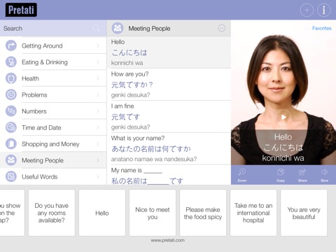 Anyone would know that ‘Thank You’ translates to ‘Arigato’ in Japanese. But when you rapidly pick up Japanese, thanks to the Japanese Pretati translation app, you can have conversations in Japanese to know that ‘Arigato gozaimasu’ is a politer was of expressing gratitude. Your wish to be able to chat in Japanese by learning everyday words and phrases from their dictionary is now a reality. Japanese Pretati is a one of a kind language translation app utilizing video and voice lessons to help travelers like you from all over the world easily learn and communicate in Japanese. Kore wo kudasai (Give me this!), did you say? Sure! And there is more. The Japanese Pretati translation app has an inbuilt Japanese dictionary containing over 500 important phrases and words that travelers and language enthusiasts will find priceless when visiting Japan or when chatting in Japanese!