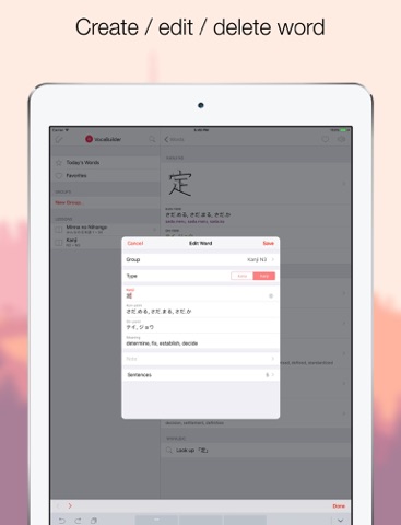 Japanese VocaBuilder is a helpful tool to study Japanese vocabulary. You can create word and share with friends via airdrop or email.