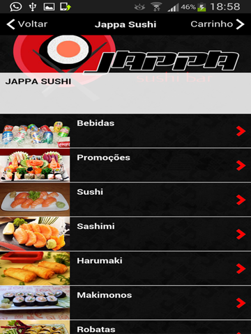Cardápio: com mais de 60 opções de pratos o Jappa Sushi Bar disponibiliza pra deliciosas opções da culinária japonesa.