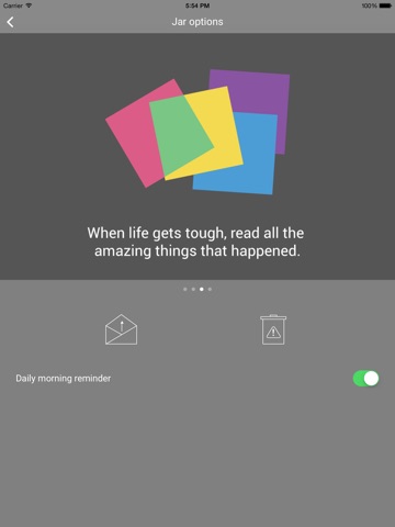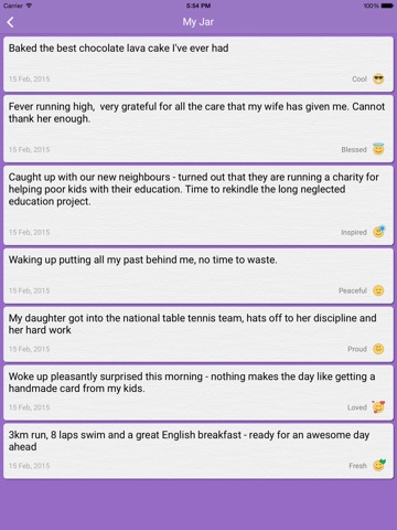 Evidence shows that simply keeping a gratitude journal—regularly writing brief reflections on moments for which we’re thankful—can significantly increase well-being and life satisfaction. Jar of happiness helps do exactly that - count your blessings and take a look at your past happy moments.