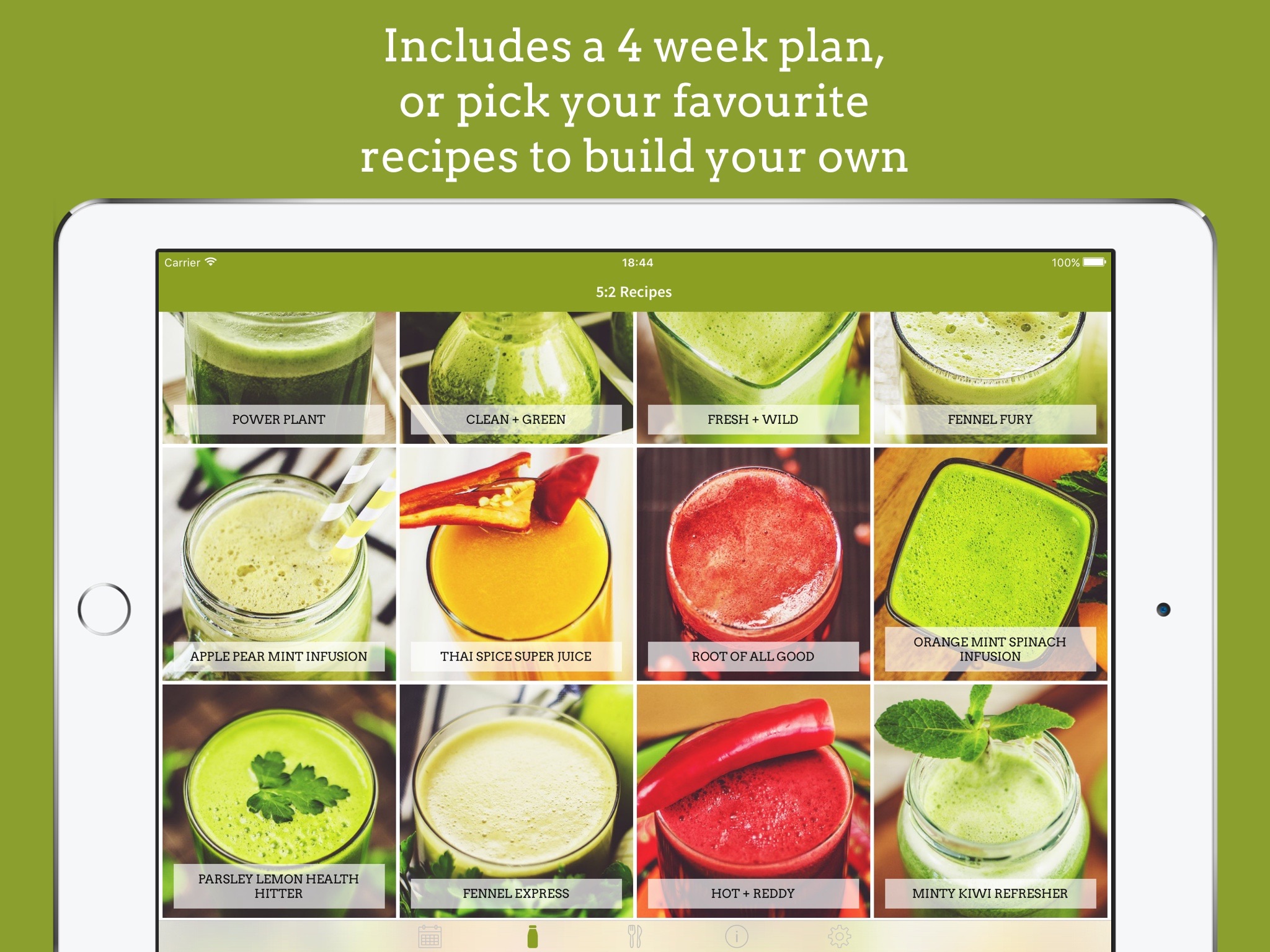 The 5:2 Juice Diet app brings the 5:2 Juice Diet book to life and features everything you need to breeze through the plan, including: