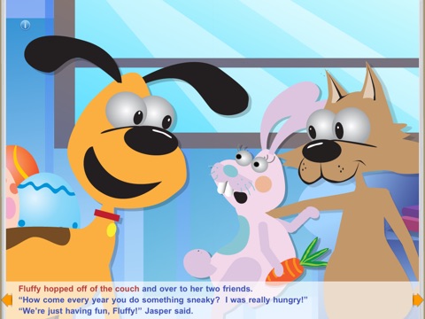 Join Jasper and Smiley on their latest adventure! It’s Easter and their friend Fluffy pays them a visit. She’s planted treat filled eggs all around the house. The first one to find five of these hidden treasures - wins!