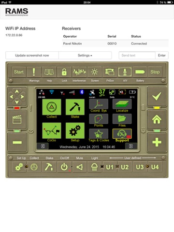The application waits for connections from LS. For setting up connection, please follow Support -> Remote Assistance on your TRIUMPH-LS and setup connection to the built-in server. Select Custom Server, specify IP address of the Mobile device, port 8800, and click Connect.