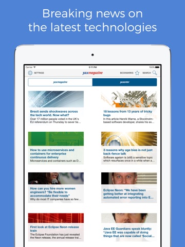 The JAX Magazine App comes with the following features: