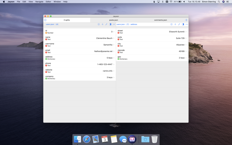 - Use multiple splits to easily compare JSON documents in a single file or across multiple files.