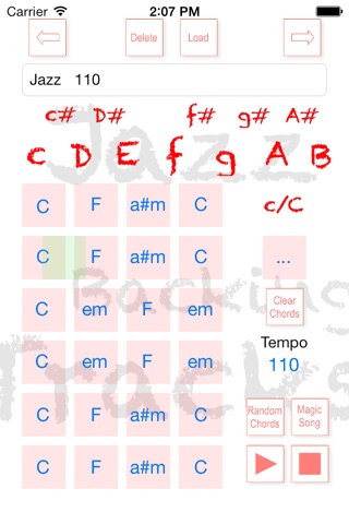 Your got no idea for a song or chords to play? Just press a button and Backing Tracks creates a new track for you.