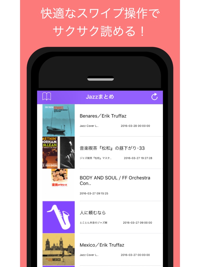 シンプルでわかりやすいUIと簡単操作でサクサク読めるJazzの情報に特化したニュースアプリです。