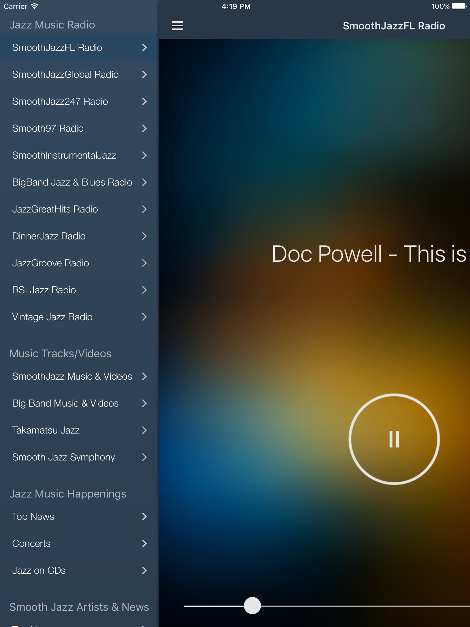 * Over 15 Jazz Radio Stations including Smooth Jazz, Big Band, Great Hits, and Vintage
