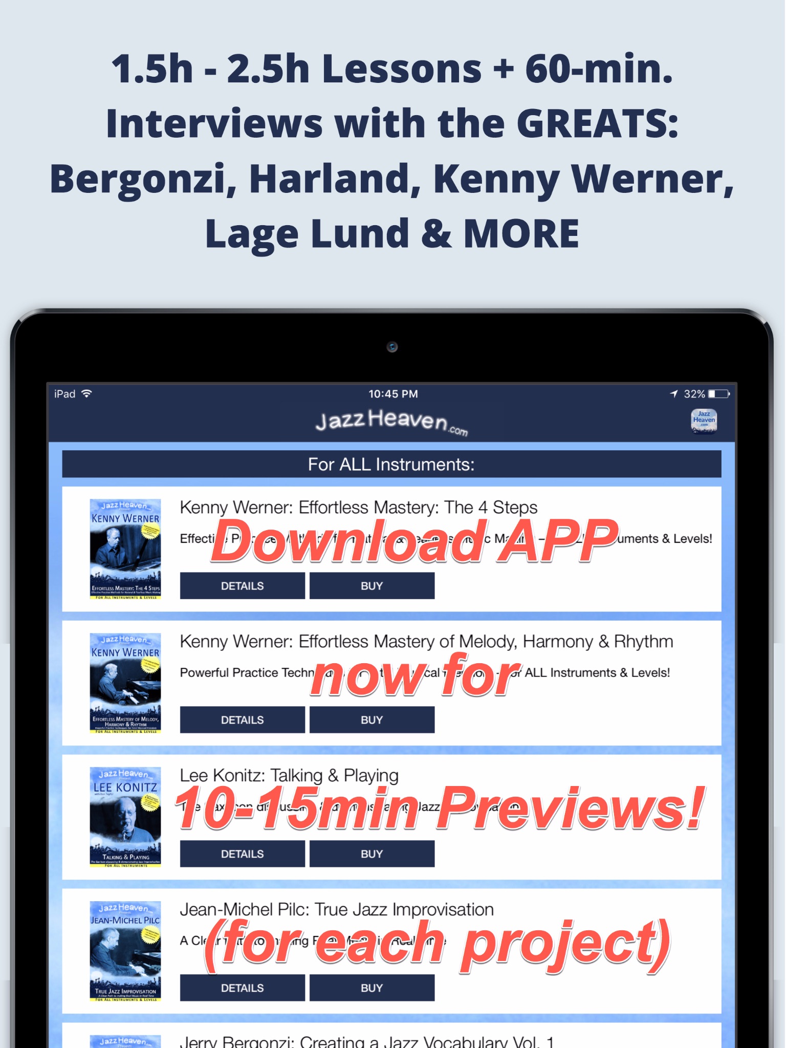 "Thanks to JazzHeaven I study with some of my HEROES. For the price it’s ridiculous how much info is on each video!" - Alfredo Paixao, Italy (5-Star Amazon Review). HARLAND, KENNY WERNER, BERGONZI, LAGE LUND, ETC. teach You! *** Killer Jazz Instructional Videos/Interviews with the Greats - for ALL Instruments!