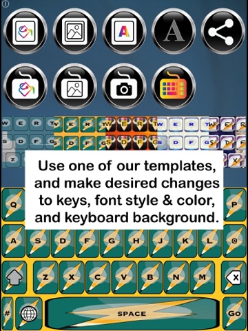Calling all writers, artists, musicians and anyone who supports Free Speech! Je Suis Free Custom Keyboard enables you to customize your iOS keyboard, using our custom keys, backgrounds and templates. Modify our templates by changing key colors, font styles and colors, and background colors, or upload a background image from your devices camera or gallery.