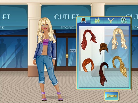 Jeans have been around since the nineteenth century but are still a very hot fashion item. this girl wants a new denim outfit and she wants your fashion studio skills to help her out. fabricate a new outfit by combining 4 different garments. you can also change the color and pattern for each piece. add some nice accessories in the makeover part of the game. have fun!