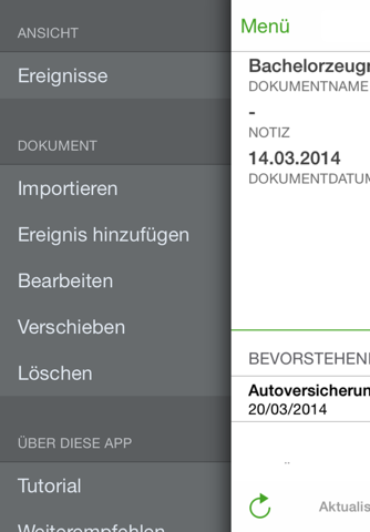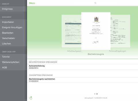 - Dokumente können in der App mit einer Erinnerungsfunktion versehen werden