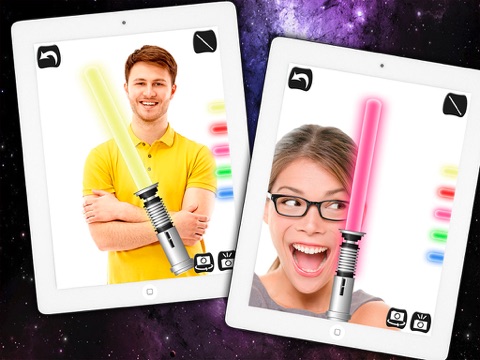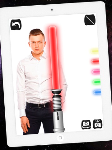 Customize your laser swords with this app and be the fastest of the galaxy to fight the war. You can also use it to take a selfie or ask you friends to take a photo of you with the lightsabers that we provide you with the posture holding a laser saber as a real Jedi fighter!