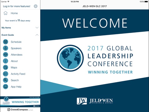 Make the most of your experience at the 2017 JELD-WEN Global Leadership Conference (GLC) with the official event mobile APP. View Special event information. Learn about speakers and receive helpful notifications about the conference. View the speaker bios, conference guide and event logistics which will provide key information for everyone arriving at the event.