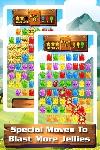 Create special Jelly Dragons: row and column blasters, jelly bombs and rainbow dragons via a series of special moves. Earn maximum points in the smallest number of moves to be a winner.