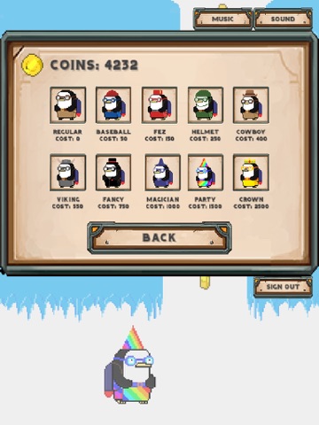 Who says penguins cant fly? Test your reflexes, and make your penguin soar! Collect coins along the way, and use them to unlock awesome costumes!