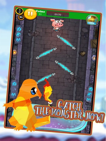 You must use poke ball for catch the monster in the top. In the game have obstruct you must use shield for save life.