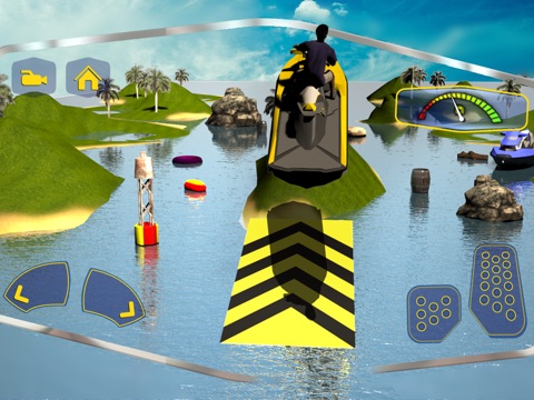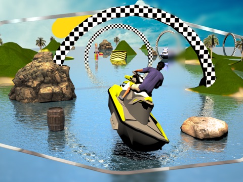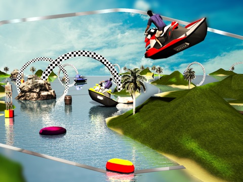Jet Ski Simulation is as easy as driving a real jet ski. Just push the throttle and enjoy the ride. Be careful on the hurdles, jumps and loops. Clear the levels in time to achieve bonus points. Be a water stuntman performer and show off your skills as you speed up into the air and land on the water with style…if you can handle it.