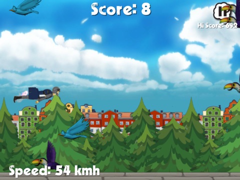 Another perfect day in Paradise, Join in on the high flying, heart pumping action adventure game. Take control of jetman through a dangerous flock of Birds. Keep your cool and keep calm to direct this daredevil though a avalanche of fearless birds. Simply press on the screen to make jetman fly the longer you press on the screen the higher jetman will fly to the top of the screen release your finger off the screen to make jetman fall to the bottom of the screen.