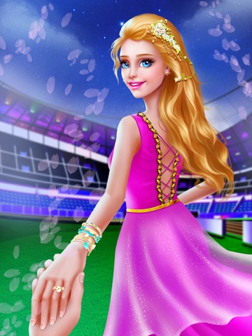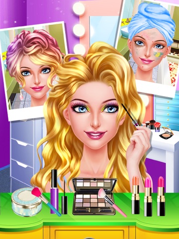 Head to the salon to choose makeup and a hairstyle. Apply eye shadow, blush and lipstick. Accentuate your lashes with various mascara colors and styles. Add face appliques and glitter to finish the look!