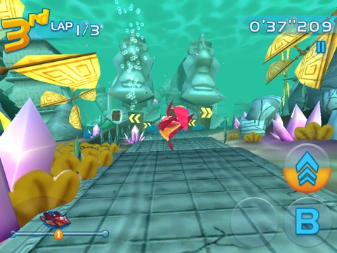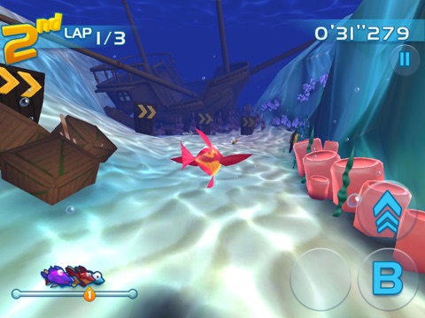 You take on the role of Jett Tailfin and his friends, racing through various undersea courses. The sea can be a dangerous place, though - look out for shark attacks! and octopi that can hamper your progress. You do want to recharge by swimming through the bubble streams or get a really good boost by navigating through the jet streams that can whiz you to first place.