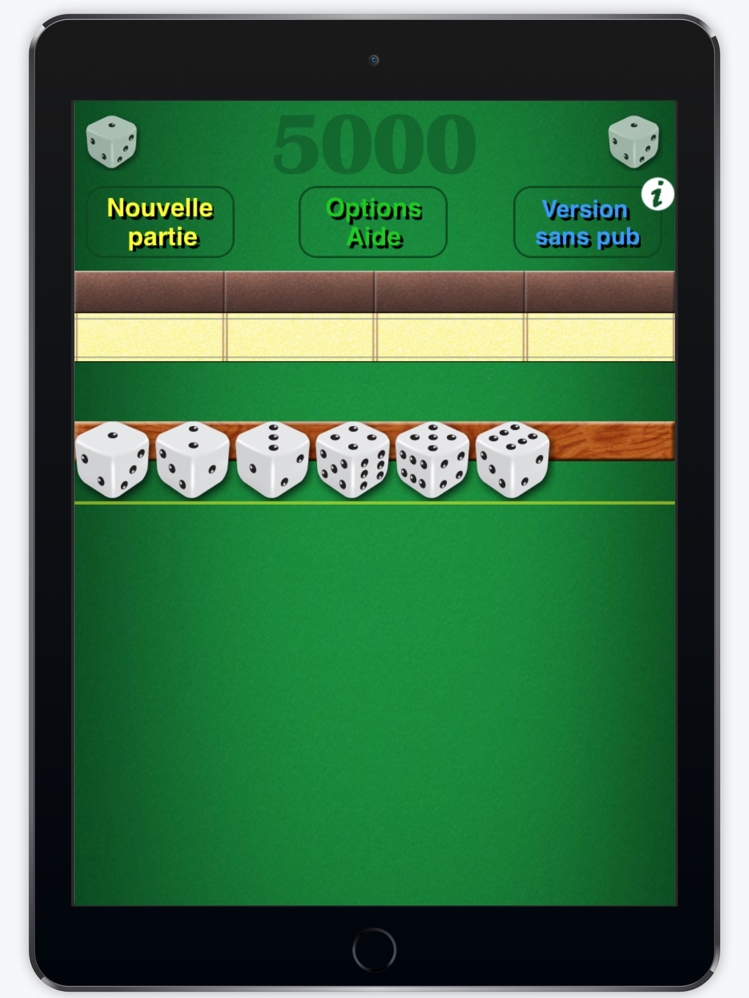 The game of 5000 is a popular dice game that exists in many forms. This version uses 6 dice and some criteria can be adjusted to meet various rules that exist around the world.