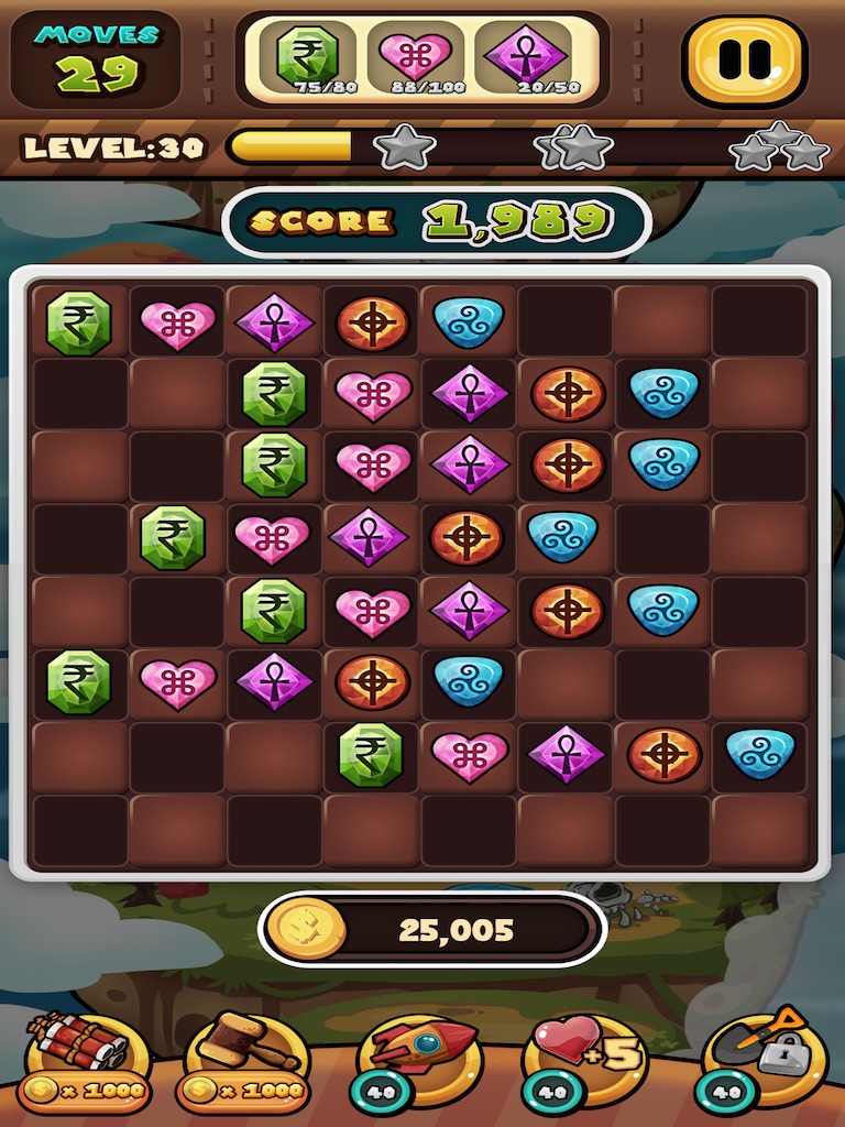 ● Watch the number of moves and collect the gems required for the jewel quest