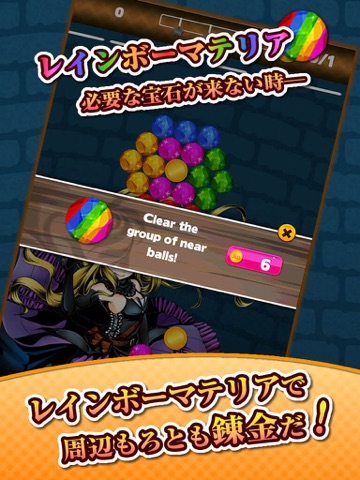 ▼ フリックで宝石をぶつけて金を錬成しよう!