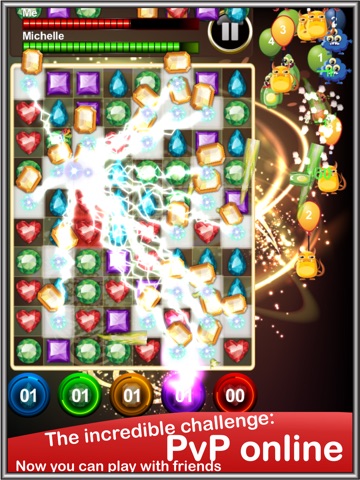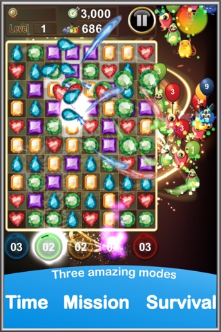 Jewels Monsters Invasion is one of the first multiplayer jewel game on the store, with the combination of the classic match 3 touch game and new creative logic, it is easy to play for everyone, yet it requires a sharp mind and delicate tactics to solve the puzzle and win the game.