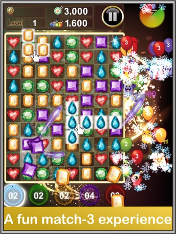 - Tap three or more jewels of the same color.