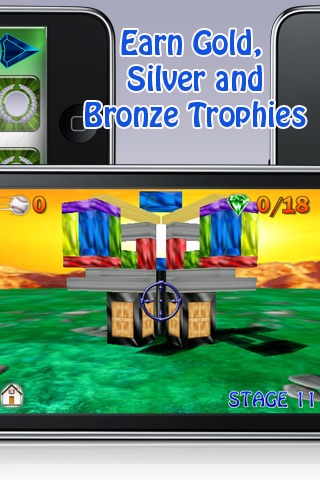 colorful gem block structures. The game requires dexterity and strategy to knock all gems down in a given stage using fewest number of throws.