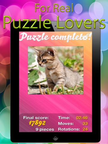 This is such a fun app, because not only can you use your own pictures it is almost exactly like a real puzzle. You have to rotate and find the spots. It is the coolest app. I love this app. It is soooooo awesome! You should totally get it.