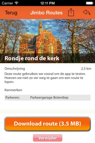 Deze Jimbo demoapp wordt gebruikt om nieuwe routes te testen of wordt beschikbaar gesteld om tijdelijke routes op te nemen. Zo kan meteen worden getest hoe eenvoudig en goed de app werkt.