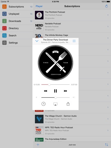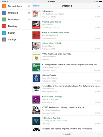 Плюсы: Простой и понятный интерфейс. Удобные настройки автоматической загрузки и синхронизации. Минусы: Нельзя синхронизировать подписки с iTunes. Интерфейс на iPad выглядит пусто и грубо. Часто выпадает ошибка о невозможности загрузки подкаста. Синхронизация между устройствами только через дропбокс Хотел использовать в качестве замены по от Apple, но на данном этапе это невозможно. Слишком проста и малофункциональна. Своих денег не стоит.