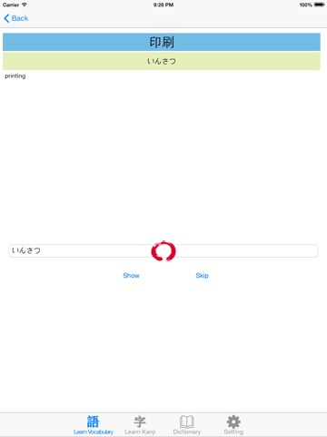 - Divide vocabularies and kanjies into small groups. In each group, there are the tests help user to memorize vocabularies and kanjies quickly.