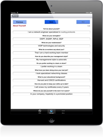 Job Interview Questions is an easy-to-use study application that almost anyone can use to prepare for their next job interview. Just click through the questions to be prepared for some of the most frequently asked questions during the job interview process. Plus you can save your answers to PDF and use it as a study guide so you can be your best at your next job interview.