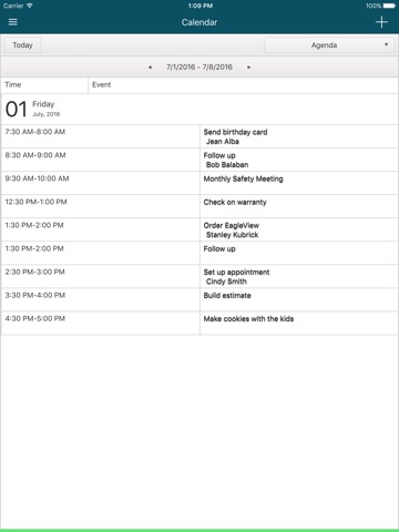 • Calendar with Day, Week, Month, and Agenda views