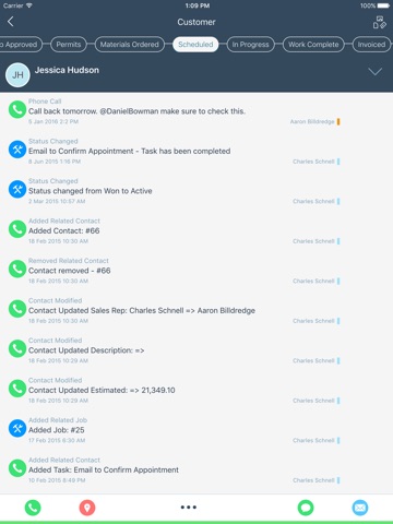 • Call, email or text customers, subcontractors, insurance adjusters, and more, JobNimbus keeps track of everything