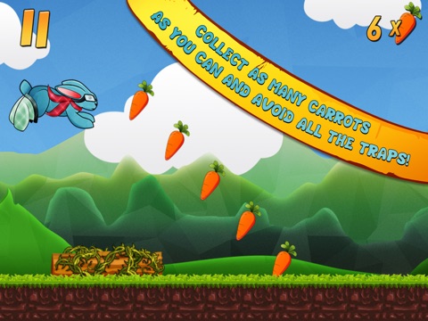 Dodge the thorns, stay alert to the evil turtles, run throught the fields, eat as many carrots as you can, and guide our hero in this adventure!
