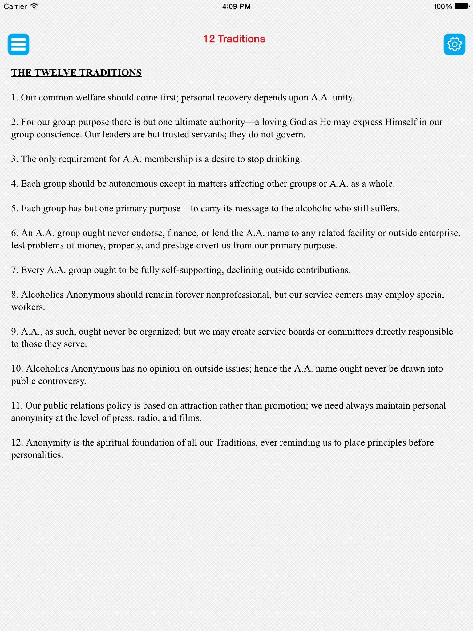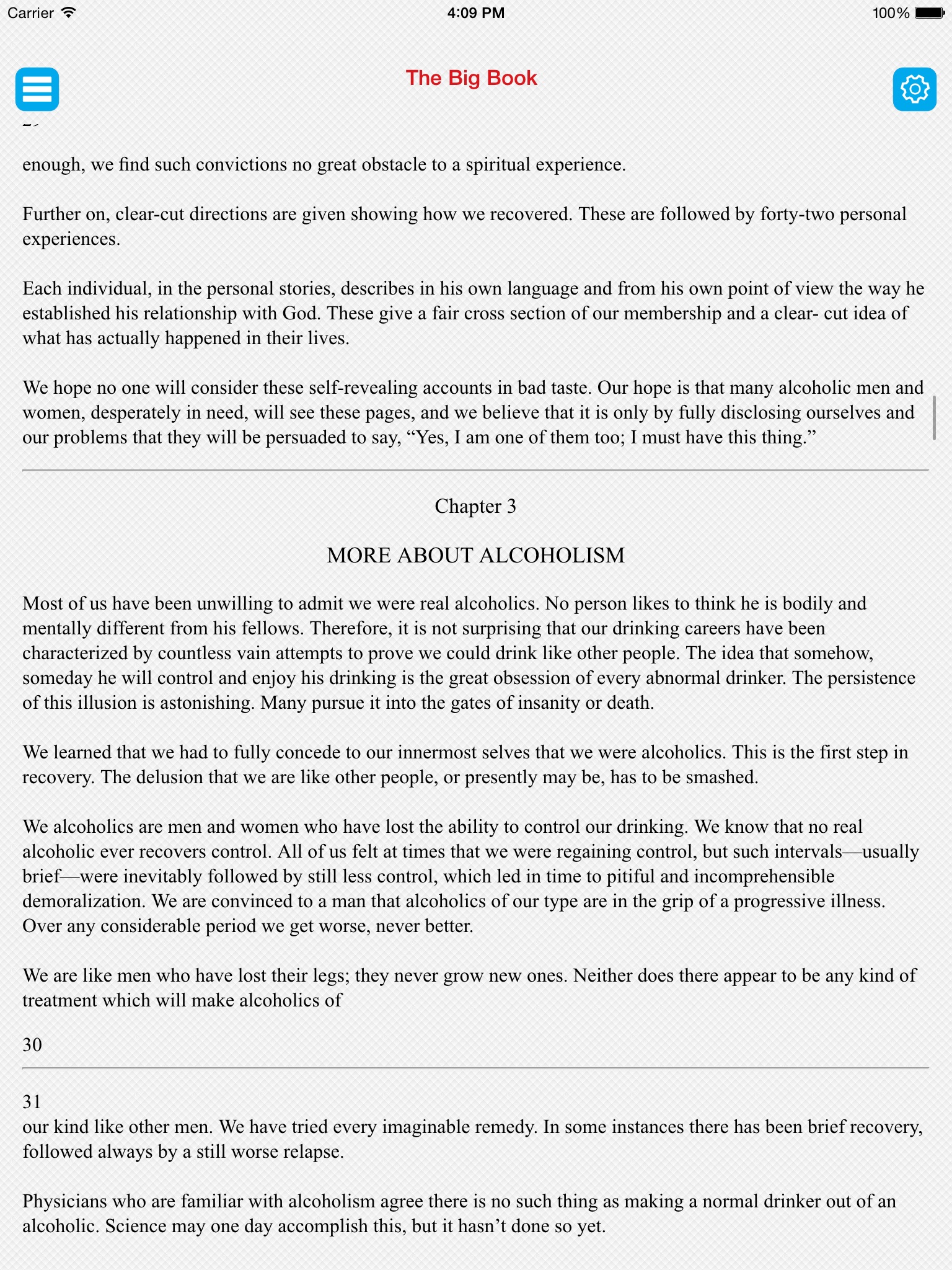 An absolute must for all alcoholics in recovery. This app has most everything needed in AA literature.