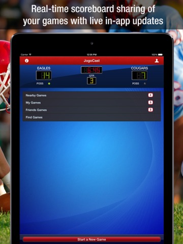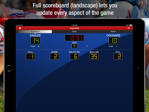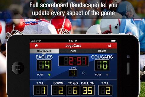 The best way to see JogoCast in action is to have 2 or more people update the same football game using their own device. Multiple people can update and share the same scoreboard live on iPhone, smartphones, and web browsers.